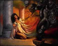 Avant que le nain à la barbe hirsute ne puisse répondre, Zeus lui réclame : « Tu es expert dans le façonnage des armes et des créatures. Tu vas créer une nouvelle incarnation. Avec de la terre et de l’eau, je t’ordonne de fabriquer une femme. Par la terre et par le feu, tu lui donneras la beauté et je me charge du reste ».