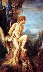 N’en déplaise aux humains, je te condamne à subir le châtiment digne d’un Dieu de ton rang. Cher cousin, tu seras conduit au sommet du mont Caucase pour pacifier ton feu au vu et au su de toutes les créatures vivantes ».